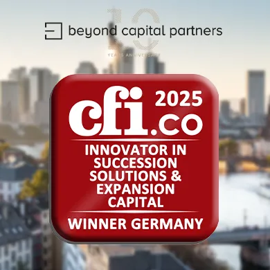 Zum zweiten Mal in Folge wurde Beyond Capital Partners mit dem internationalen CFI.co Award in der Kategorie „Innovator in Succession Solutions & Expansion Capital Germany 2025“ ausgezeichnet. Die Jury würdigt Beyond Capital Partners für die strategische Unterstützung von mittelständischen Unternehmen durch Nachfolge- und Wachstumsphasen mit zielgerichtetem Fokus, operativer Effizienz, weitsichtiger